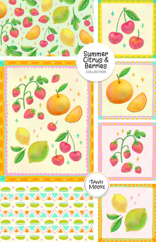 A lot of this work has been shaped by the direction I mentioned above, especially my focus on building art more intentionally in little families instead of only as one-off pieces. I’ve been thinking more about how artwork can stretch across cards, stationery, and other paper goods, while still feeling playful, colourful, and true to my style. Some of these were fresh new ideas, and some came from revisiting older directions with a clearer eye, which has honestly been really fun to see unfold.